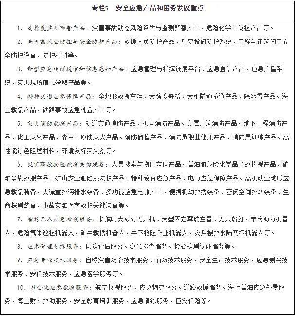 优化产业结构。以市场为导向、企业为主体,深化应急管理科教产教双融合,推动安全应急产业向中高端发展。采用推荐目录、鼓励清单等形式,引导社会资源投向先进、适用、可靠的安全应急产品和服务。加快发展安全应急服务业,发展智能预警、应急救援救护等社区惠民服务,鼓励企业提供安全应急一体化综合解决方案和服务产品。