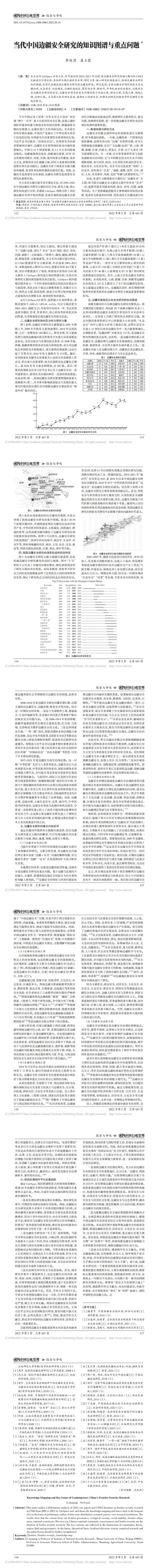 李俊清,聂玉霞:当代中国边疆安全研究的知识图谱与重点问题