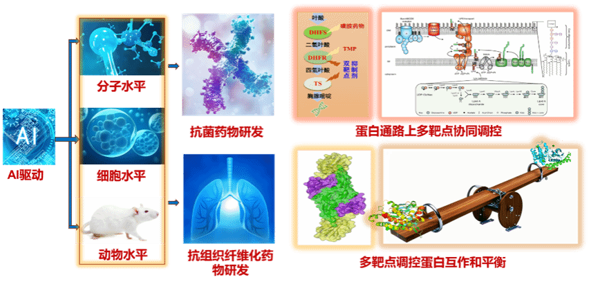 医药生物技术研究所搭建抗菌药物和先导分子数据库,结合化合物结构与活性数据,构建统一的高质量数据库,以细菌生存必须的生物大分子为靶点开发AI模型,加速抗菌药物发现,从而对抗日益严峻的抗生素耐药问题。