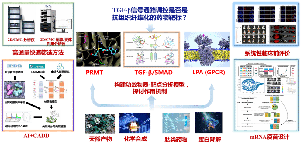 课题组与西藏大学王嗣岑教授获得国家自然基金区域创新发展联合基金重点支持项目资助,开展“基于TGF-β通路的防治肝肺纤维化道地藏药筛选与作用机制研究”,建立AI模型进行藏药活性分子筛选,构建分子水平快速筛选模型,通过干湿实验结合开展民族药物抗组织纤维化研究。