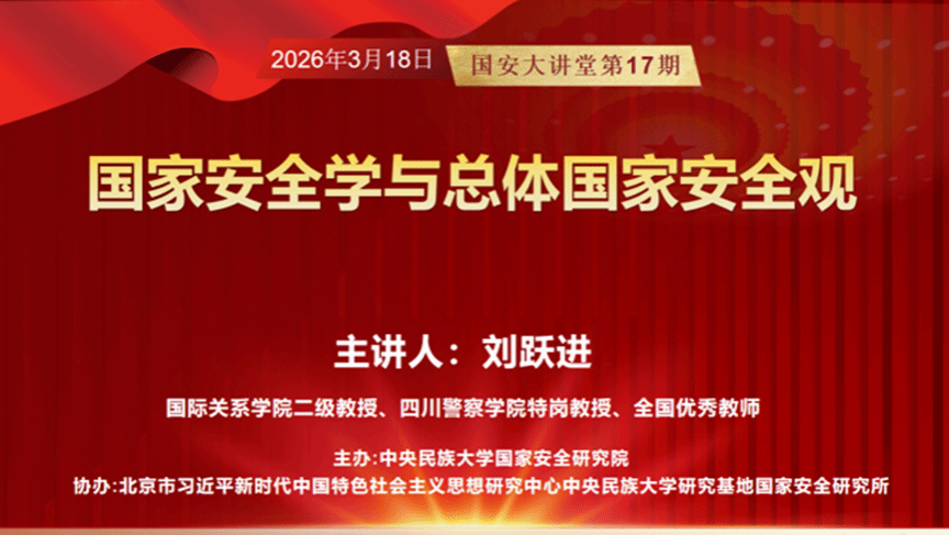 为推进四人麻将玩法 国家安全学学科建设与理论研究,四人麻将玩法 于2026年3月18日下午举办“国安大讲堂”第十七期专题讲座。本期讲座特邀国家安全学领域知名专家、国际关系学院二级教授刘跃进作题为《国家安全学与总体国家安全观》的学术报告。