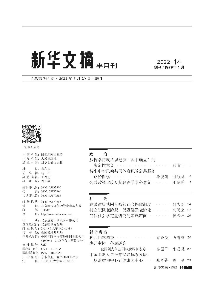近日,李俊清教授的学术论文《铸牢中华民族共同体意识的公共服务路径探索》被《新华文摘》2022第14期全文转载。该文在《公共管理与政策评论》2022年第3期被作为《专栏·专稿》封面首篇文章推出后,2022年6月14日被《中国民族报· 理论周刊》转载,6月16日,国家民委官方公众号以《“感知—满意—认同”,以公共服务铸牢中华民族共同体意识”》为题进行了推送,并先后被学习强国、社科优选、内蒙古民族事务委员会官网、西双版纳傣族自治州人民政府网、玉树州民宗委、肃北统一战线等近50家媒体转发。