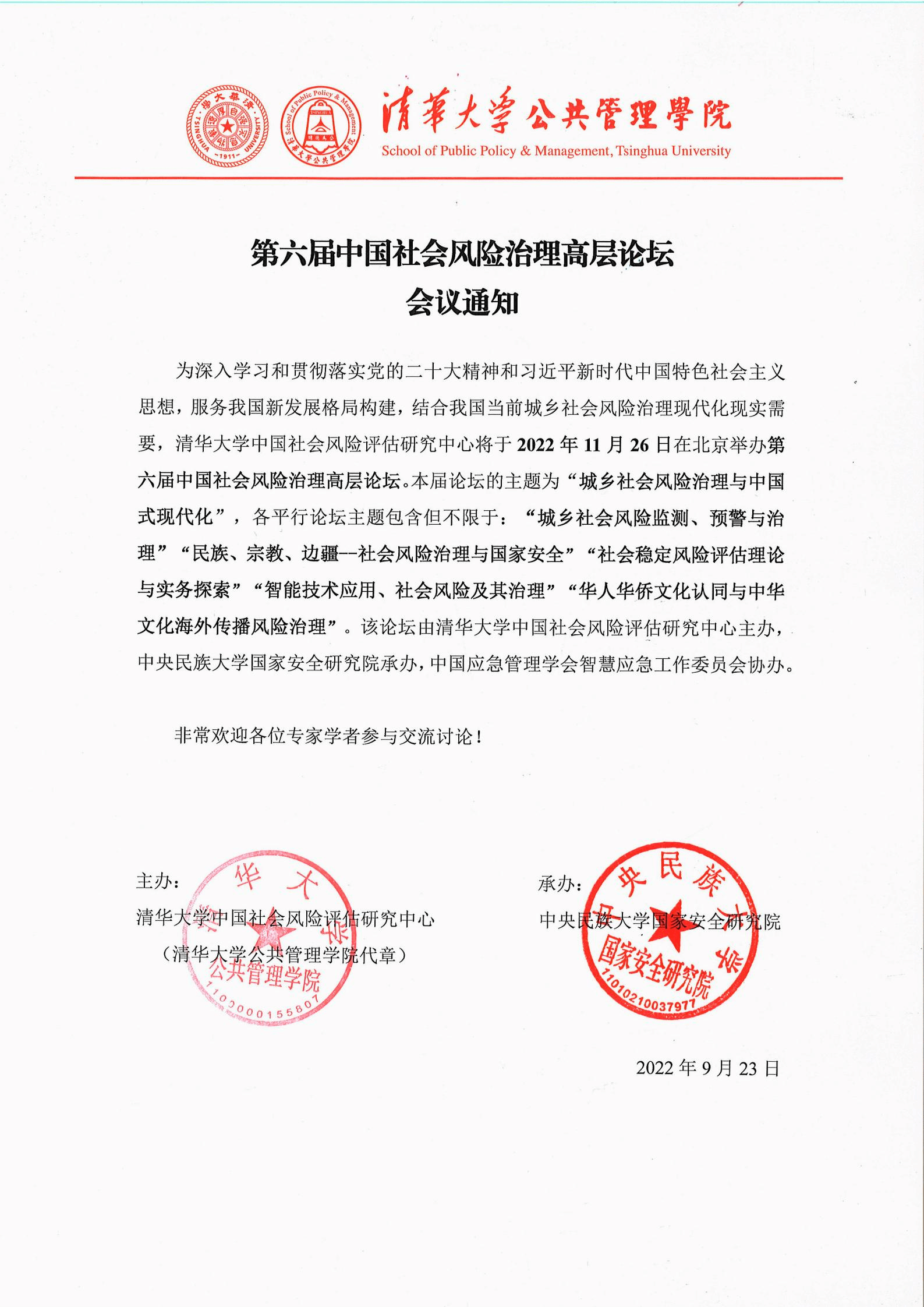 为深入学习和贯彻落实习近平新时代中国特色社会主义思想和党的二十大精神,服务我国新发展格局构建,结合我国当前城乡社会风险治理现代化现实需要,清华大学中国社会风险评估研究中心将于2022年11月26日在北京举办第六届中国社会风险治理高层论坛。本届论坛的主题为“城乡社会风险治理与中国式现代化”,各平行论坛主题包含但不限于:“城乡社会风险监测、预警与治理”“民族、宗教、边疆--社会风险治理与国家安全”“社会稳定风险评估理论与实务探索”“智能技术应用、社会风险及其治理”“华人华侨文化认同与中华文化海外传播风险治理”。该论坛由清华大学中国社会风险评估研究中心主办,四人麻将玩法