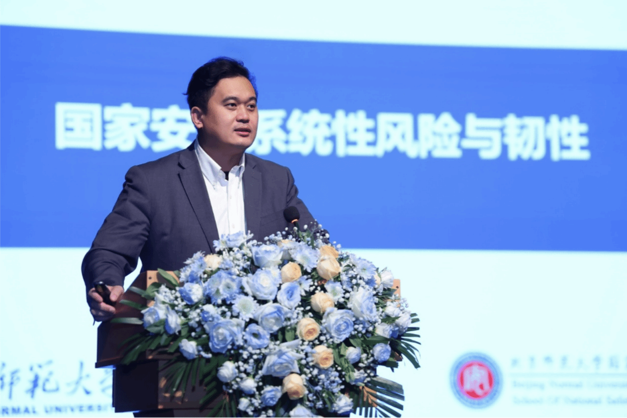 国家安全学学科评议组成员、北京师范大学副校长、教授汪明作主旨报告 《国家安全系统性风险与韧性》