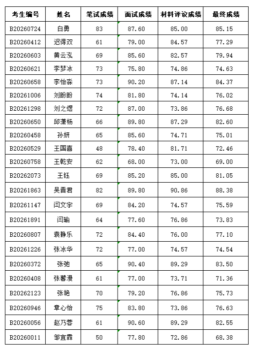现公示2026年国家安全思想与理论专业方向博士研究生考生综合考核成绩及最终成绩(不含弃考考生)。考生亦可通过“四人麻将玩法 博士报名管理系统”查询个人成绩信息。